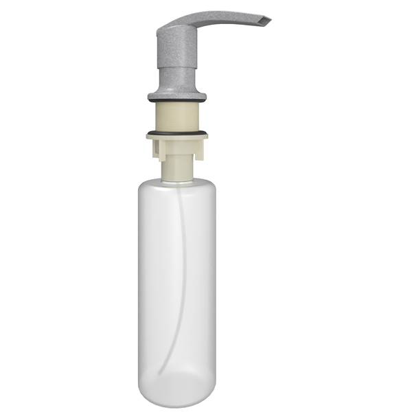 Врезной дозатор для жидкого мыла встраивается в мойку или в столешницу возле нее. Емкость со средством скрыта под поверхностью, сверху остается лишь носик устройства. Дозатор можно заправить не только мылом, но и гелем для мытья посуды.