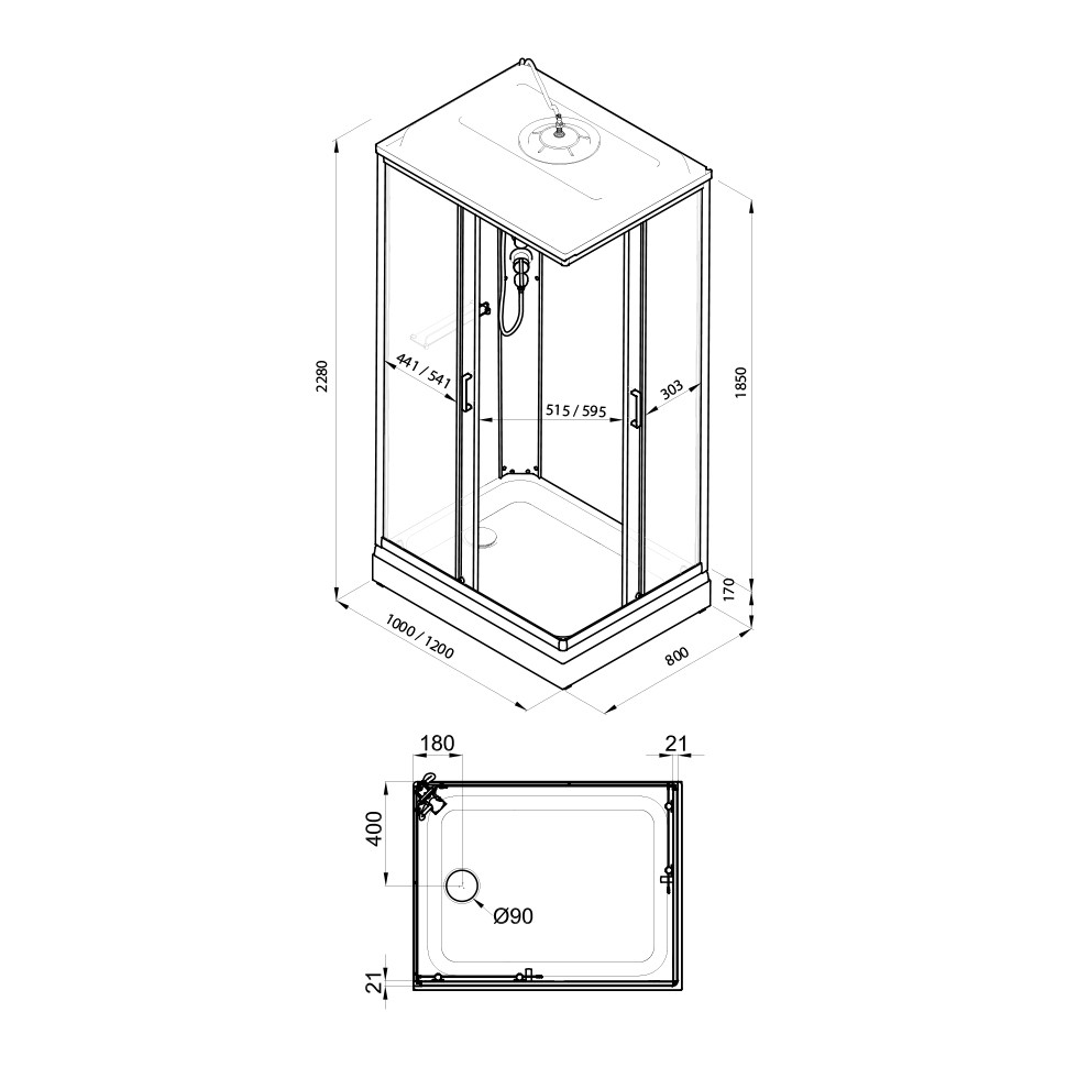 Душевая кабина Квадро 100*80 А Полосы, ДН4