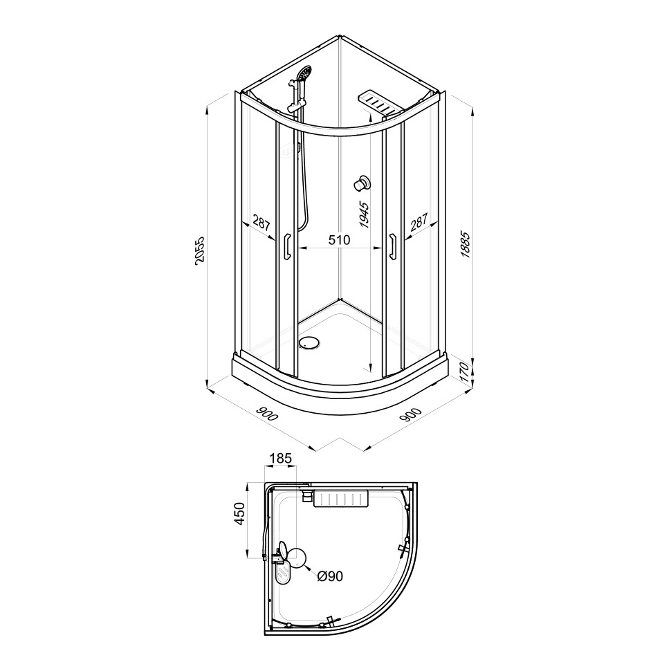 Душевая кабина Прайм-БлэкБК М3 90*90А (без крыши)