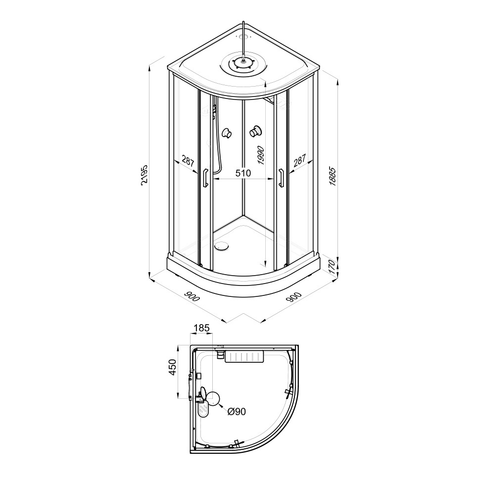 Душевая кабина Прайм-Блэк-Вельвет М3 90*90А