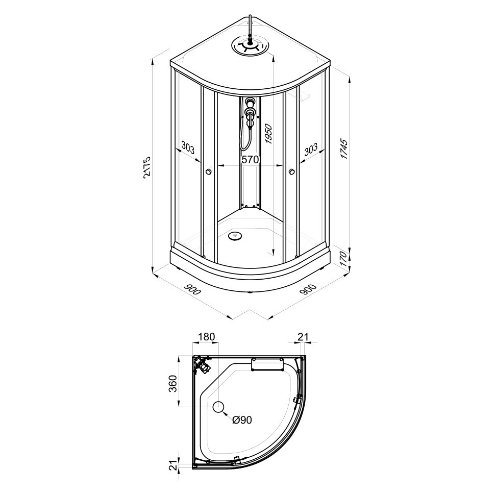 Душевая кабина Топ 90*90 Ас полочкой