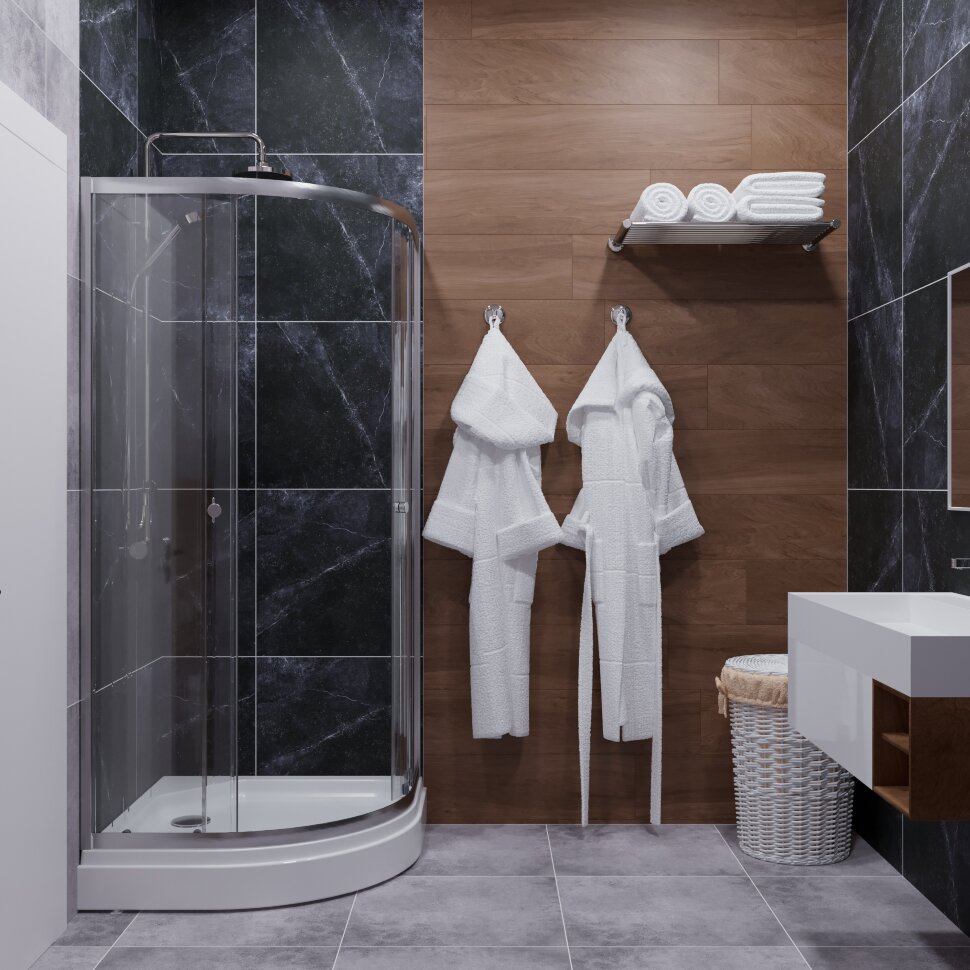 Душевое ограждение Альфа-Хром 100х100, полукруг, низкий поддон