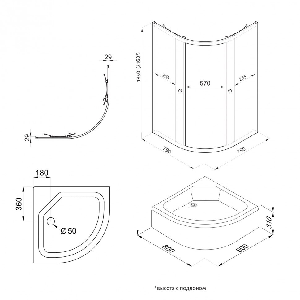 Душевое ограждение Альфа-Хром 80х80 В, полукруг, средн. подд.