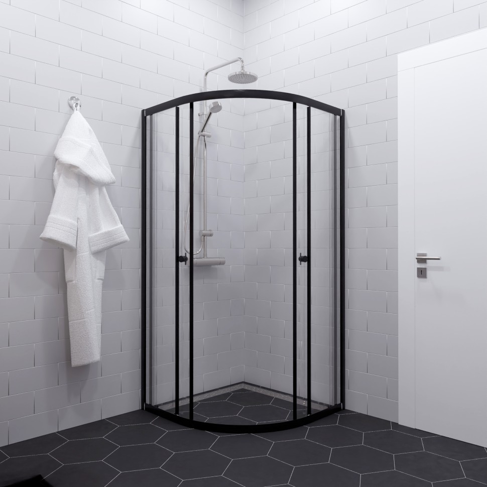 Душевое ограждение (без поддона) Альфа-Блэк 100х100, полукруг