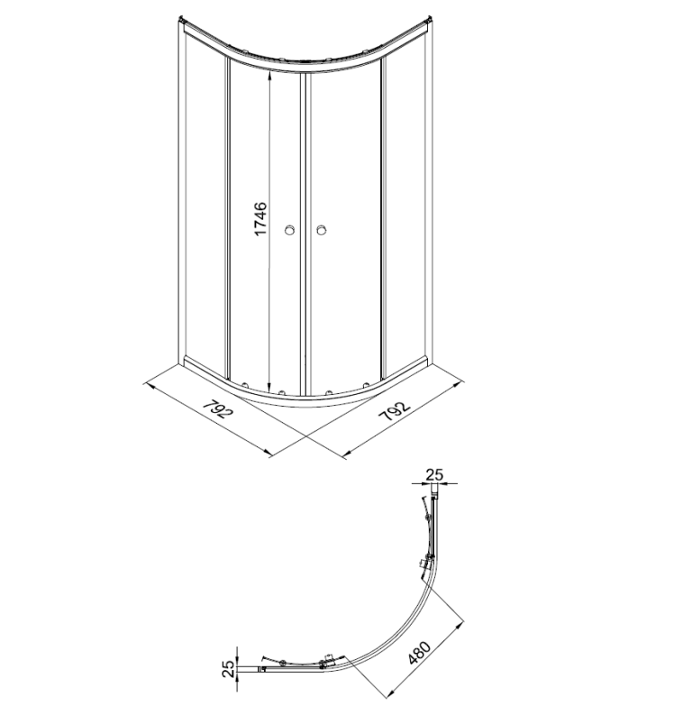 Душевое ограждение (без поддона) Ультра 80*80*185 полукруг