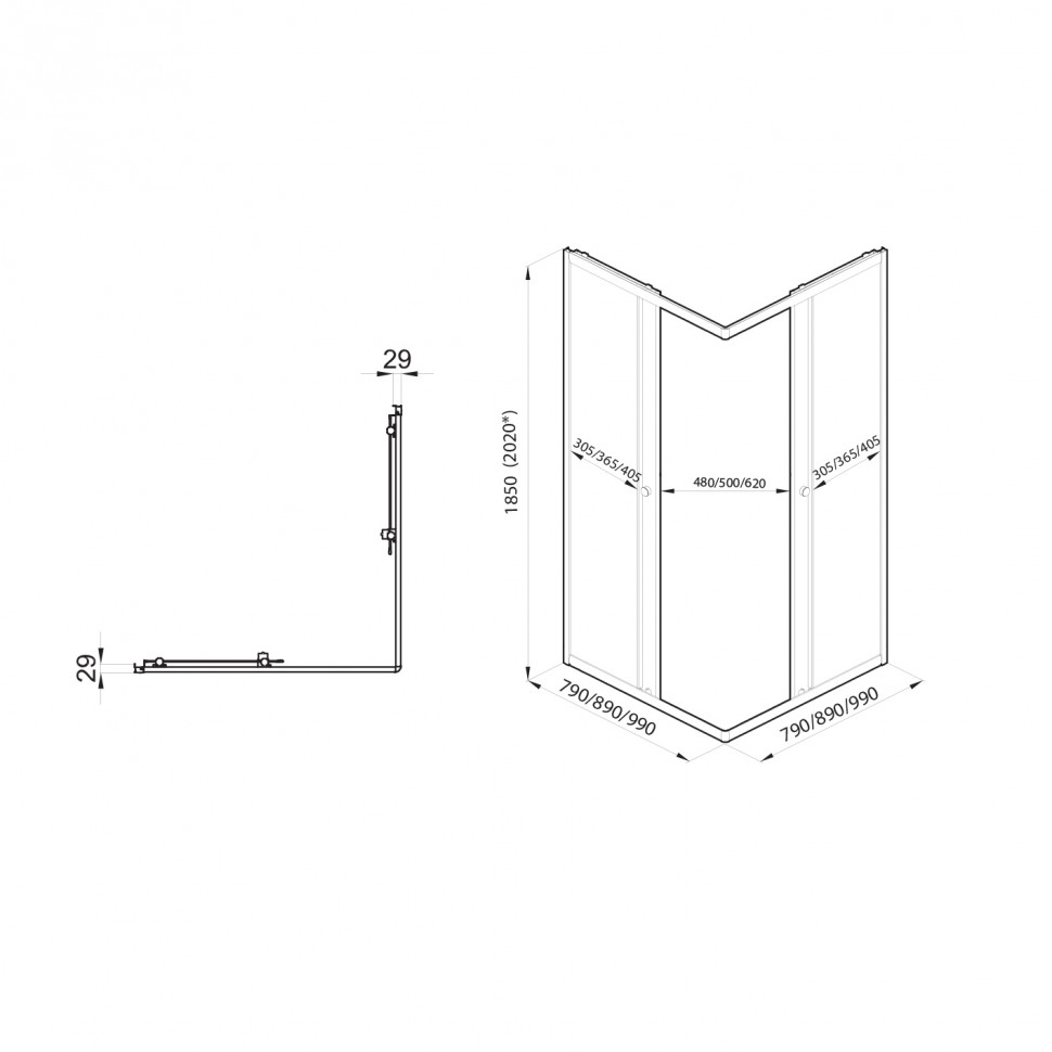 Душевое ограждение (без поддона) Вента-Хром 100х100, квадрат