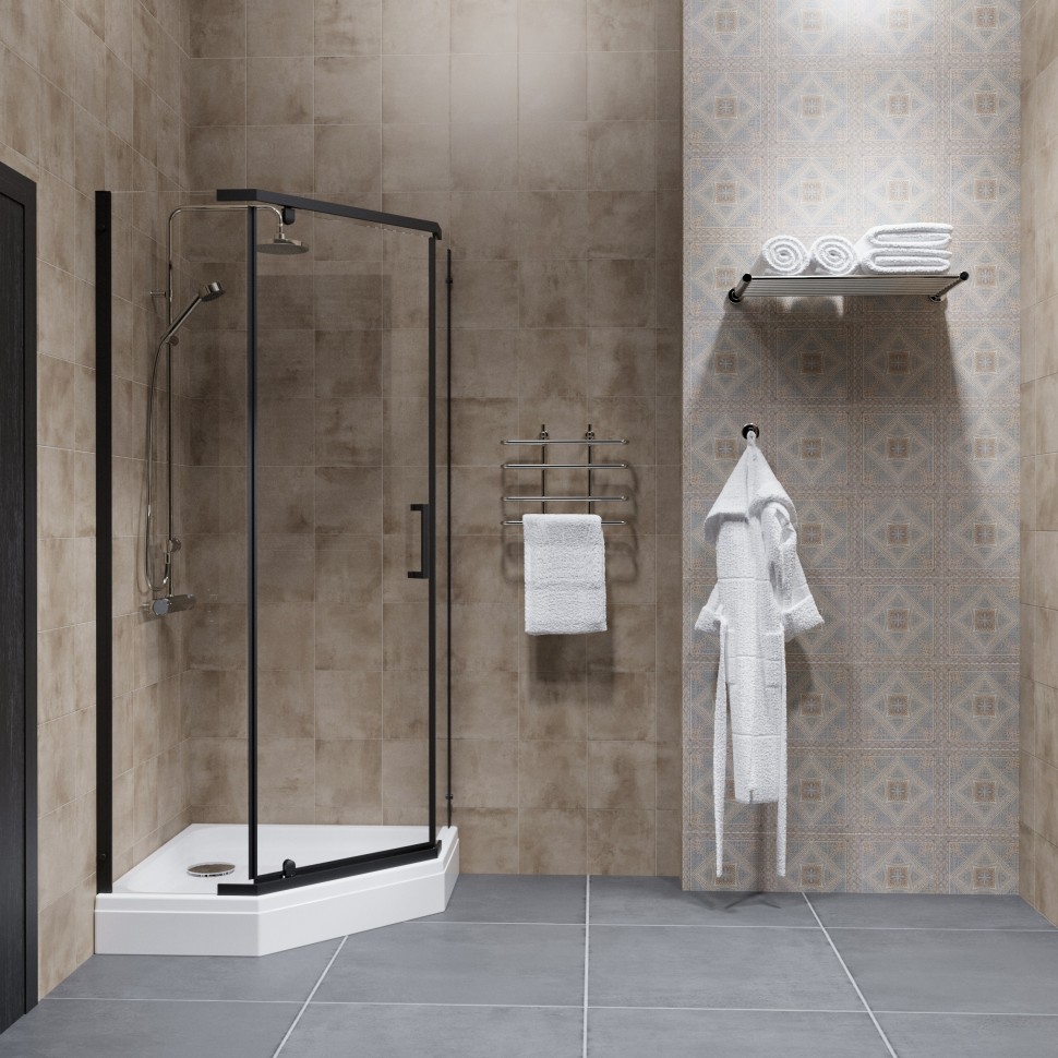 Душевое ограждение Дека-Блэк, 90х90, пятиугольник низкий поддон