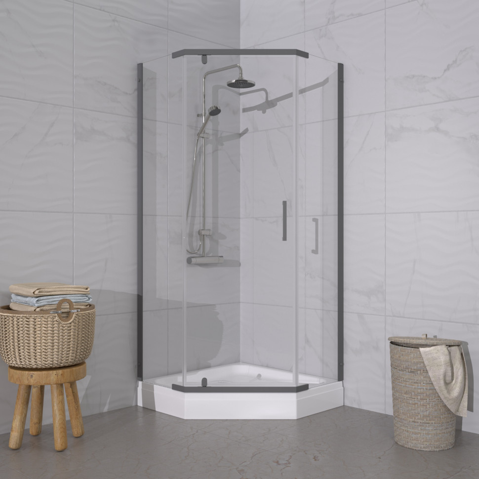 Душевое ограждение Дека-Графит, 100х100, пятиугольник низкий поддон