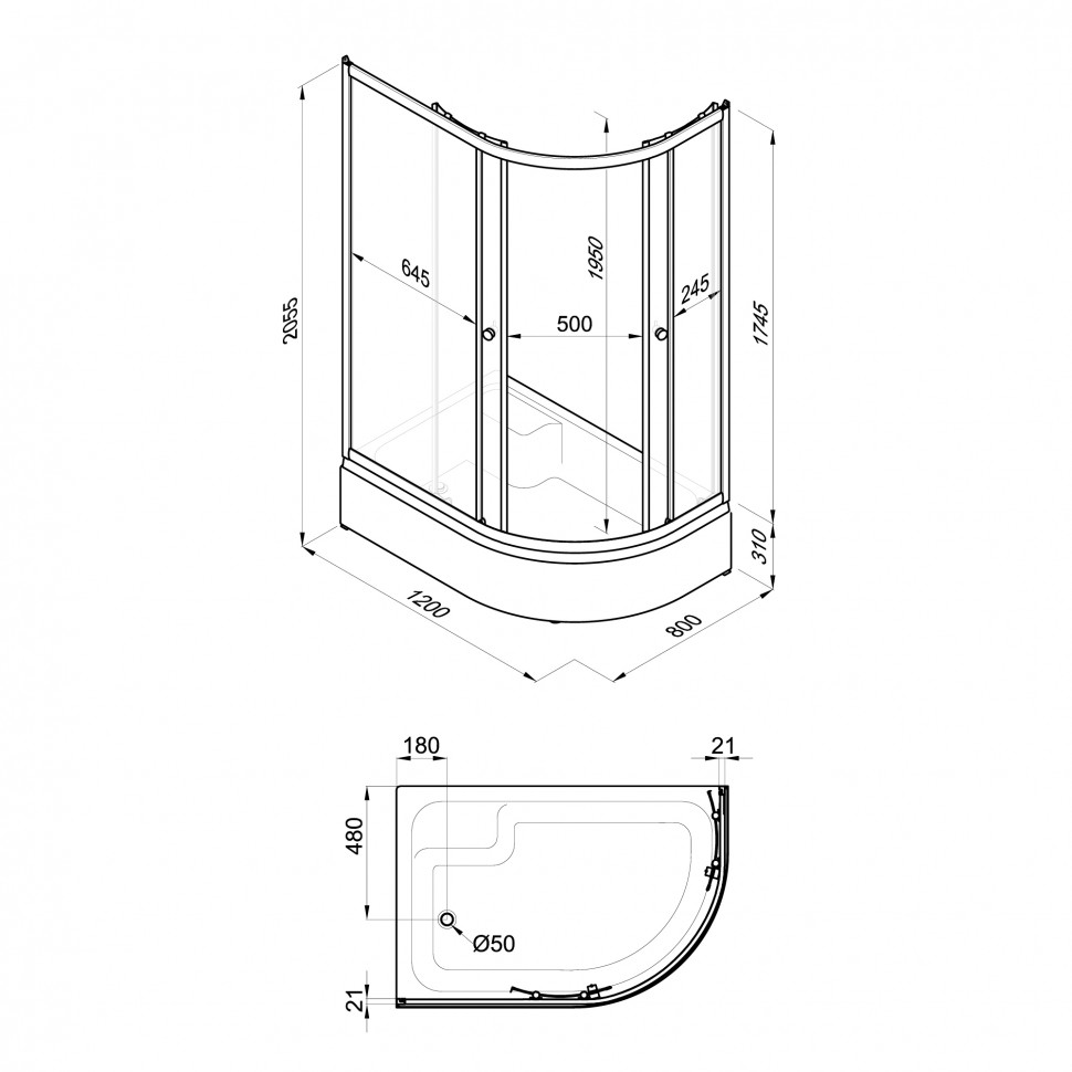 Душевое ограждение Коралл-Лайт 120*80 В лев
