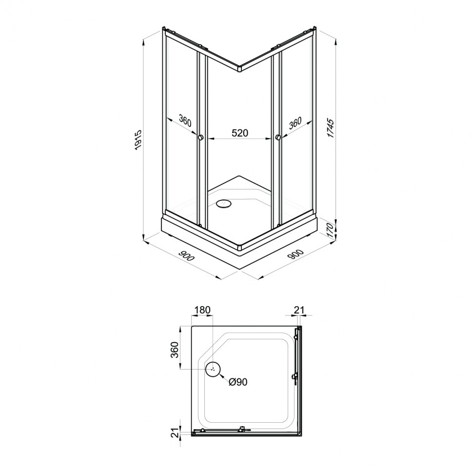 Душевое ограждение Вельвет-К 90*90 А