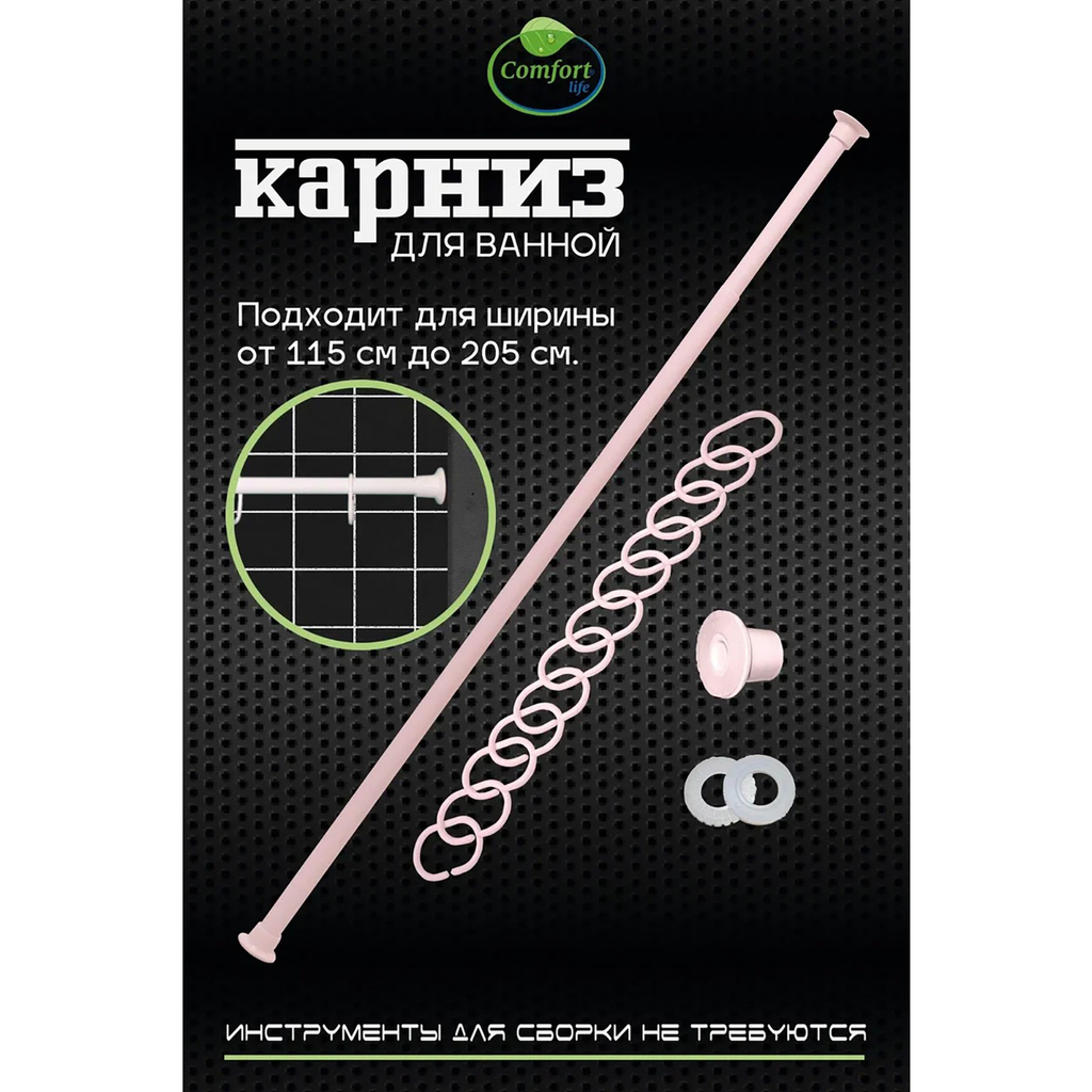 Карниз для ванной розовый 1,15*2,0 с кольцами Comfort Life