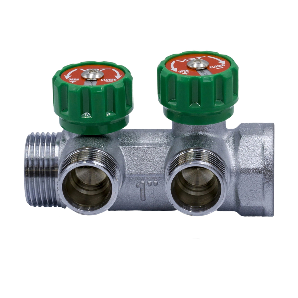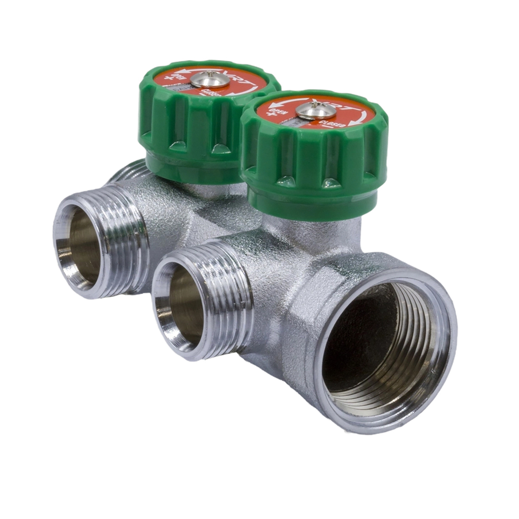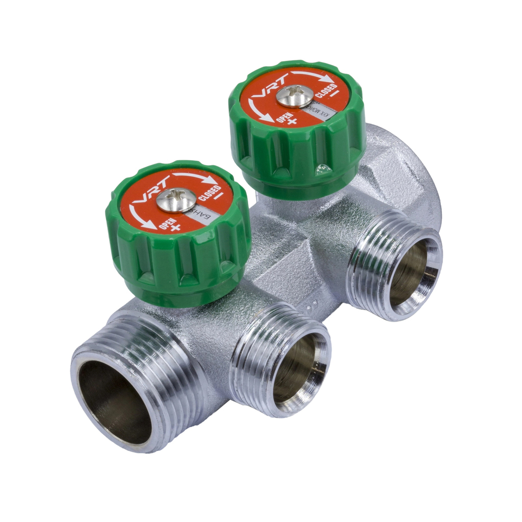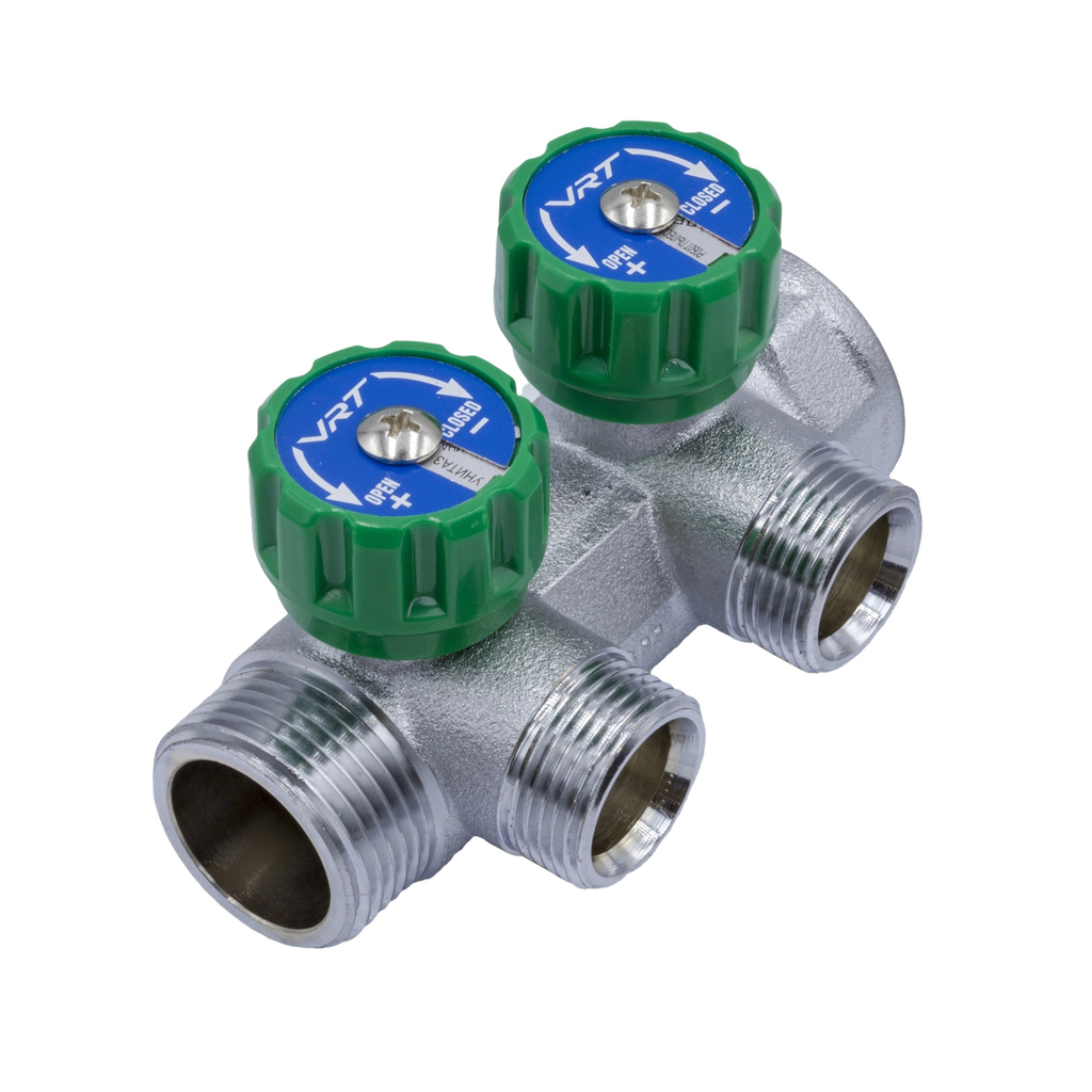 Коллектор 1''x3/4'' (евроконус) с регулировочными вентилями для подачи водоснабжения VRT (2 вых)