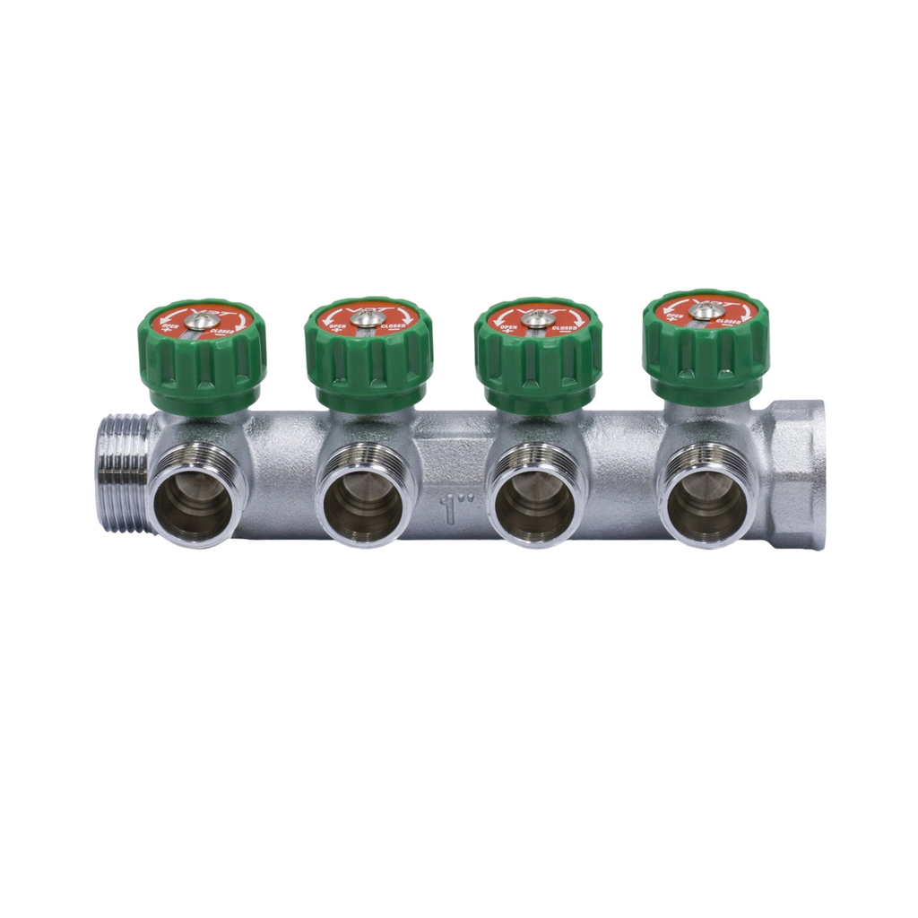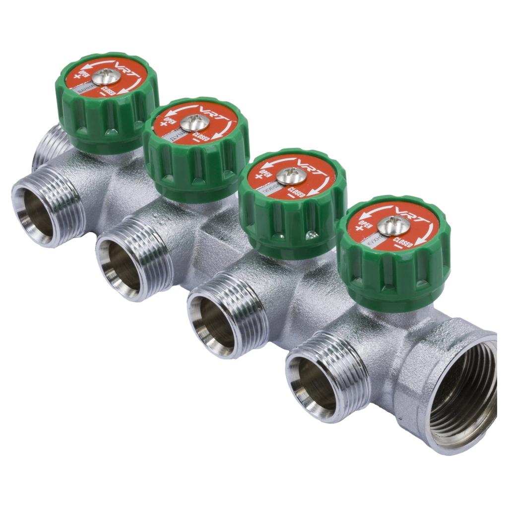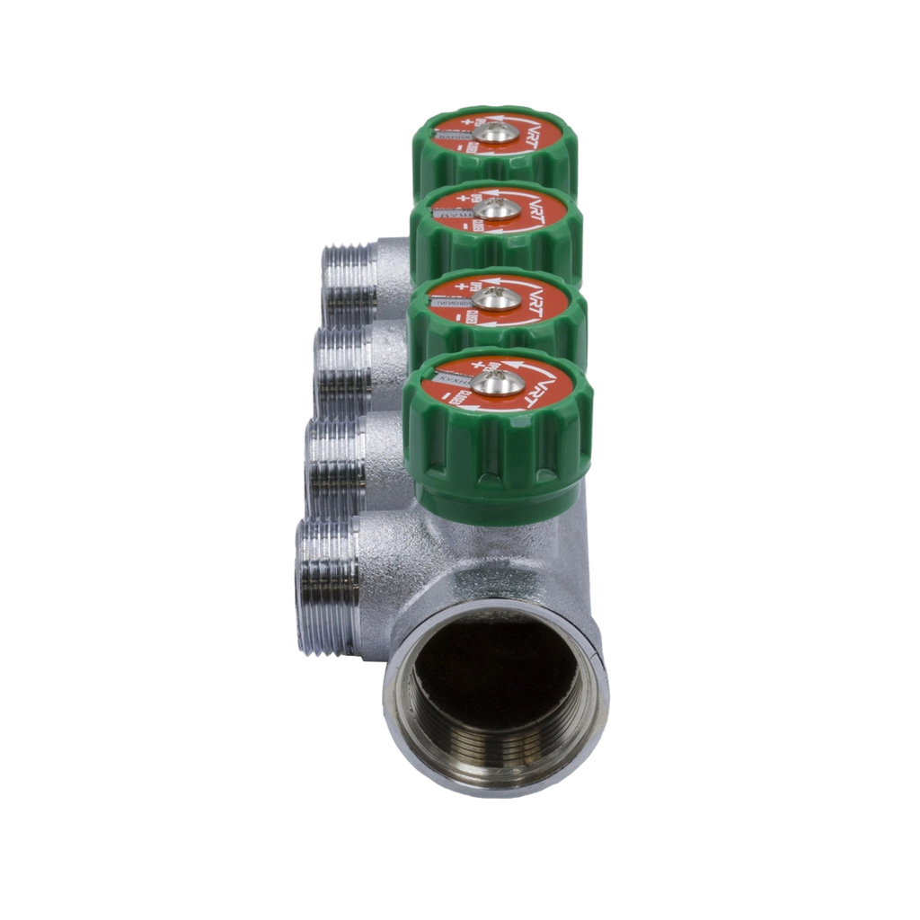 Коллектор 1''x3/4'' (евроконус) с регулировочными вентилями для подачи водоснабжения VRT (4 вых)