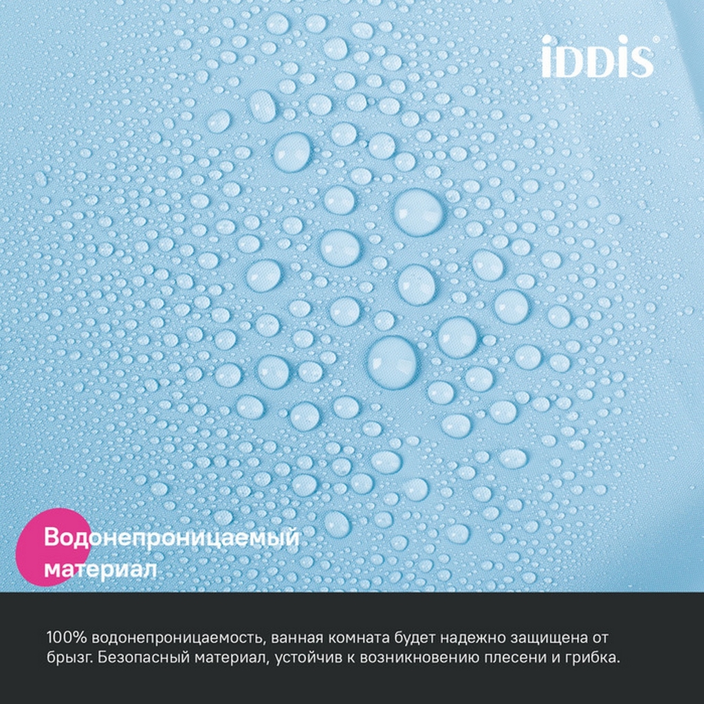 Однотонная непрозрачная штора для ванной IDDIS серии Promo продумана для максимально комфортного и удобного использования.Изготовлена из современного материала - прочного, водонепроницаемого, износостойкого, экологичного и безвредного для здоровья.