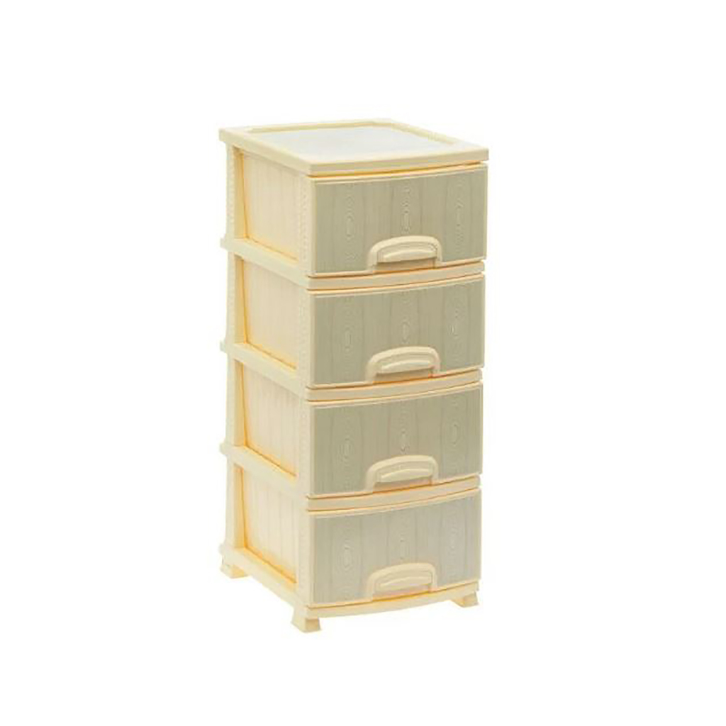 Комод из пищевого пластика с четырьмя выдвижными ящиками предназначен для хранения вещей и продуктов питания. Он гармонично впишется в интерьер любой комнаты. Легкий и вместительный комод поможет обеспечить порядок в доме. Узор на передних панелях придаст индивидуальность и подарит настроение.Не рекомендуется размещение пластикового комода вблизи батарей центрального отопления и электрических обогревателей.