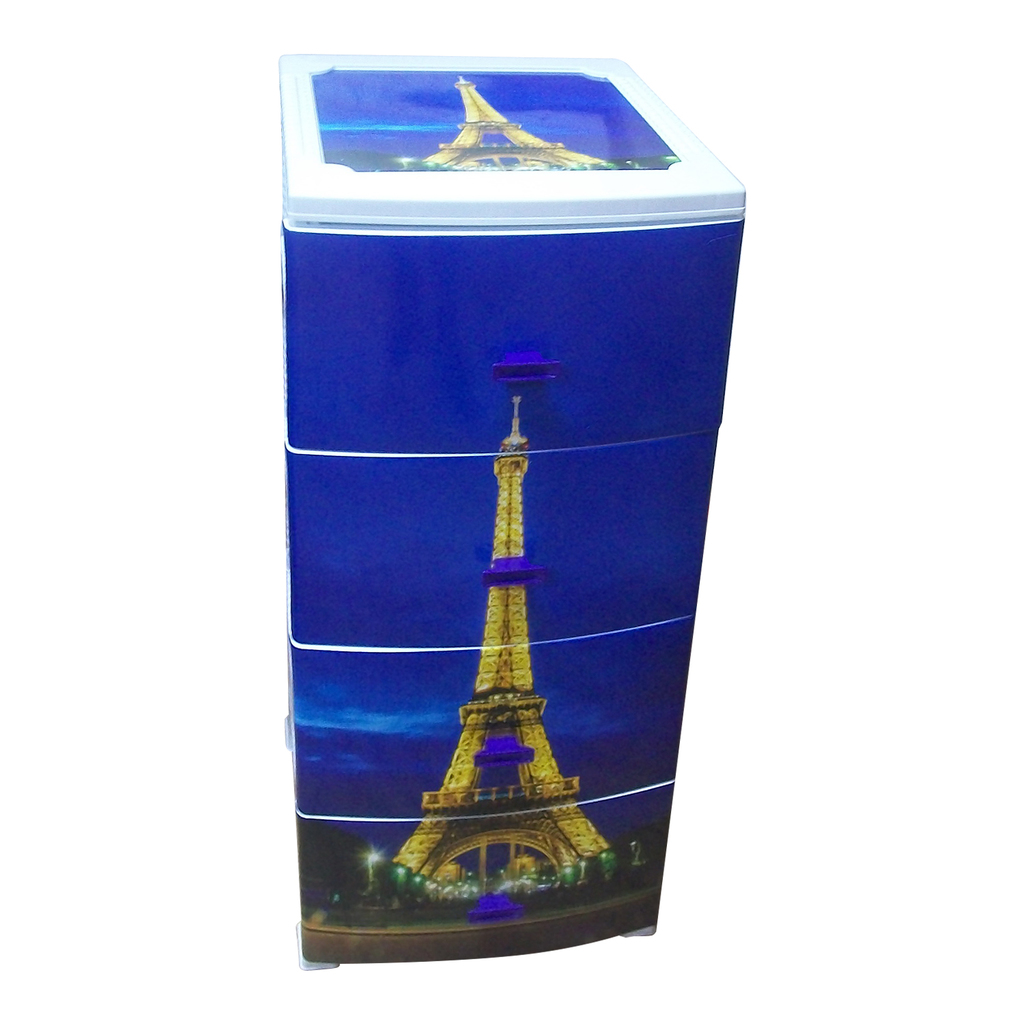 Комод из пищевого пластика с четырьмя выдвижными ящиками предназначен для хранения вещей и продуктов питания. Он гармонично впишется в интерьер любой комнаты. Легкий и вместительный комод поможет обеспечить порядок в доме. Узор на передних панелях придаст индивидуальность и подарит настроение.Не рекомендуется размещение пластикового комода вблизи батарей центрального отопления и электрических обогревателей.