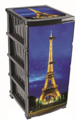 Комод из пищевого пластика с четырьмя выдвижными ящиками предназначен для хранения вещей и продуктов питания. Он гармонично впишется в интерьер любой комнаты. Легкий и вместительный комод поможет обеспечить порядок в доме. Узор на передних панелях придаст индивидуальность и подарит настроение.Не рекомендуется размещение пластикового комода вблизи батарей центрального отопления и электрических обогревателей.