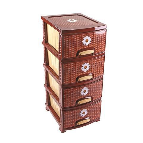 Комод из пищевого пластика с четырьмя выдвижными ящиками предназначен для хранения вещей и продуктов питания. Он гармонично впишется в интерьер любой комнаты. Легкий и вместительный комод поможет обеспечить порядок в доме. Узор на передних панелях придаст индивидуальность и подарит настроение.Не рекомендуется размещение пластикового комода вблизи батарей центрального отопления и электрических обогревателей.