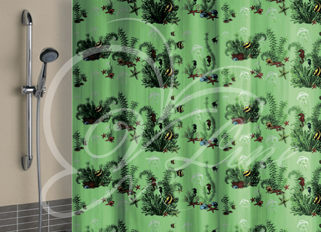 Штора для ванной полиэтилен 180*180 зеленый фон с кольцами