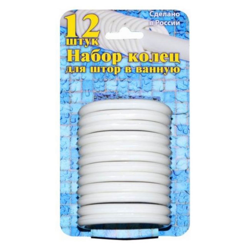 Набор из 12 пластиковых колец для крепления шторки для ванной комнаты на карниз. Кольца имеют продолговатую форму и вставляются в люверсы шторки.Сертификаты, декларации и паспорта товаров TIM