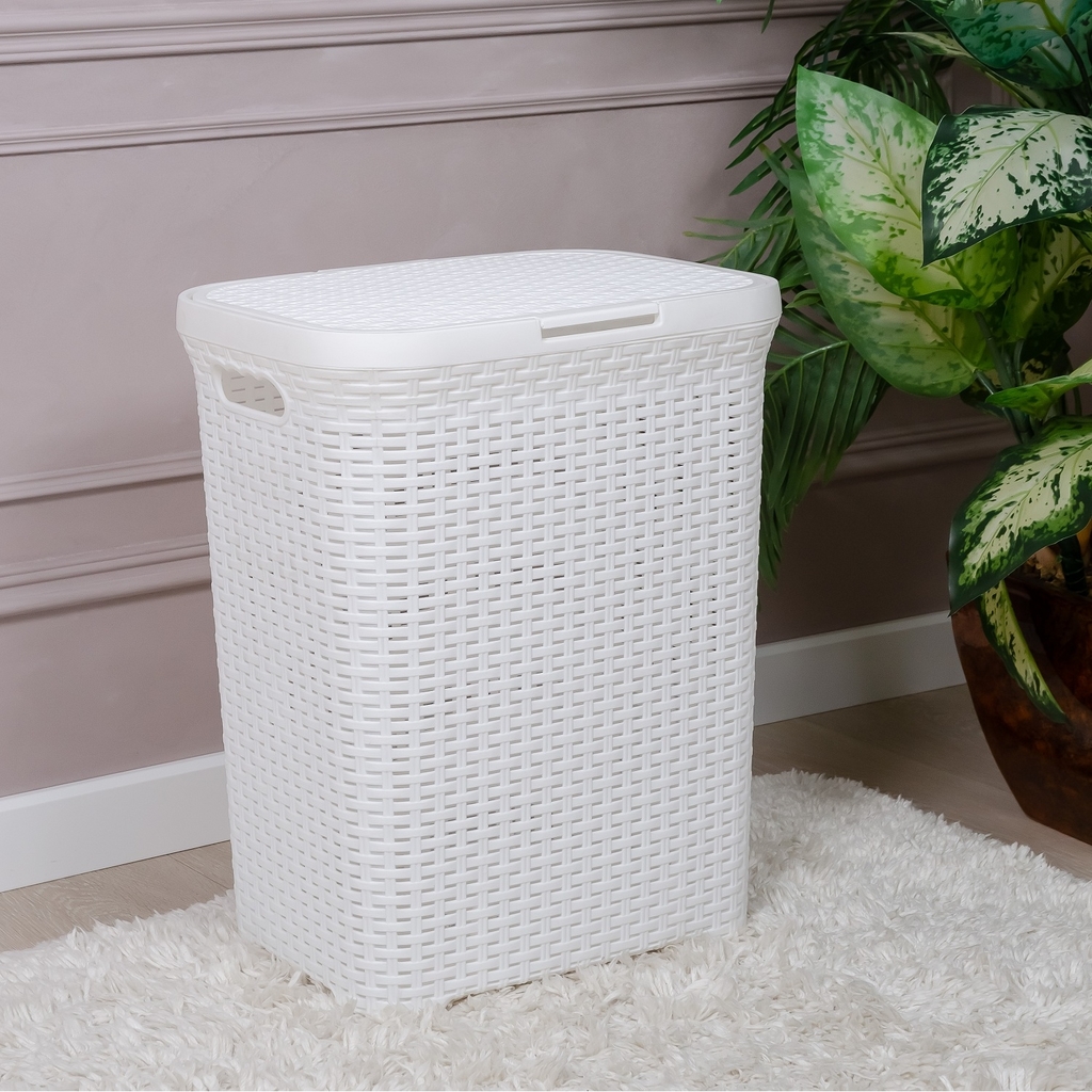 Корзина д/белья с крышкой 40л РОТАНГ белая