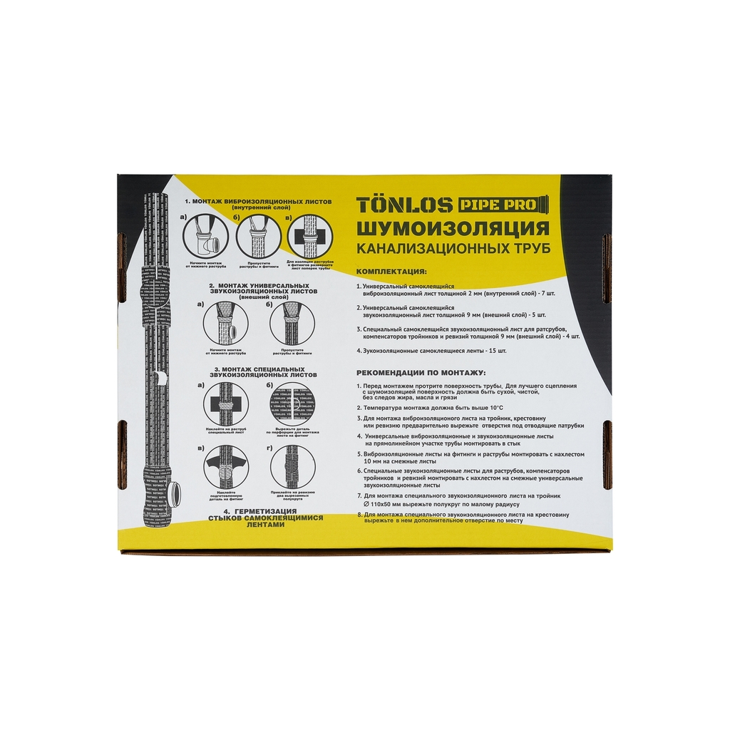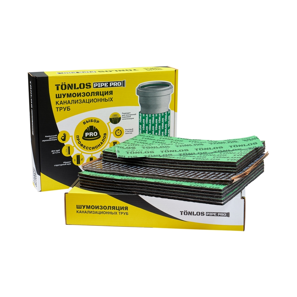 Шумоизоляция TONLOS PIPE PRO поглощает лишние звуки канализации, снижает уровень шума в 5 раз вне зависимости от этажности здания.Комплект состоит из двух материалов: