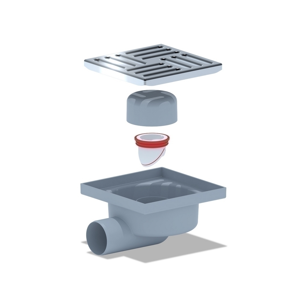В трапе предусмотрен сухой затвор, который препятствует проникновению неприятных запахов из канализации.