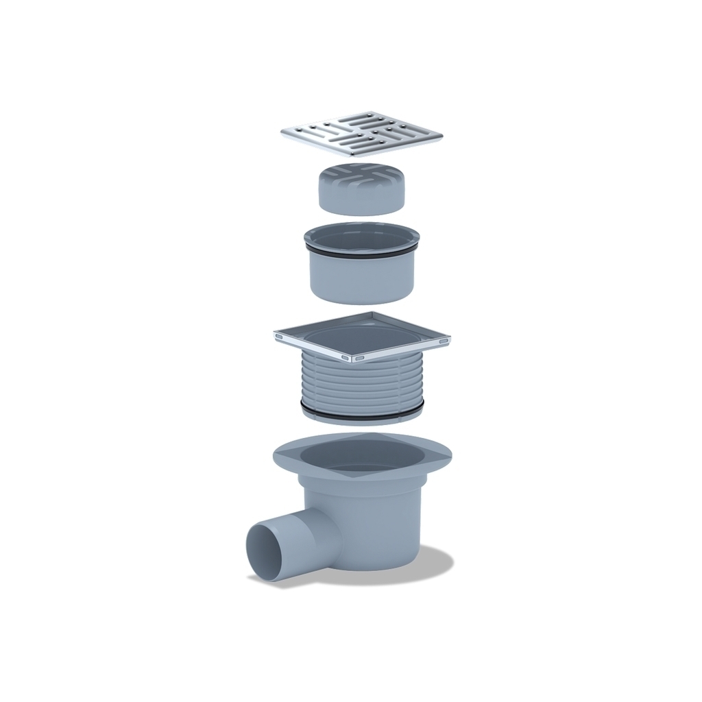 50 трап с гориз. спуском, рег решетка 100х100 нерж, СУХОЙ АНИ пласт TQ5602