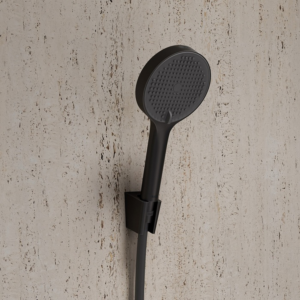 Ручная лейка для душа Aiger (диаметр 120 мм) в матовом черном исполнении сочетает эстетику и функциональность. Гармонично комбинируется с любой сантехникой благодаря универсальному подключению и монохромному дизайну с тактильными силиконовыми форсунками.Функциональные возможности: