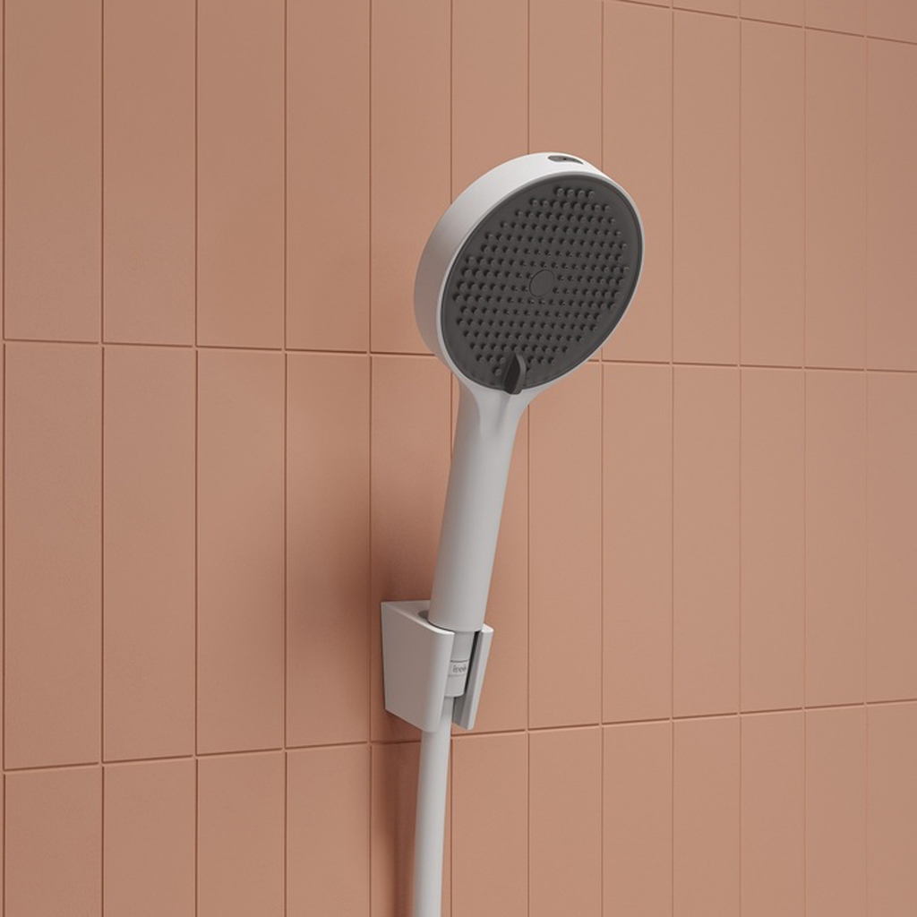 Ручная лейка для душа Aiger диаметром 120 мм в элегантном матово-белом исполнении сочетает современный дизайн и многофункциональность. Контрастное оформление с темно-серой лицевой панелью и силиконовыми форсунками создает стильный акцент в интерьере ванной комнаты.Функциональные возможности: