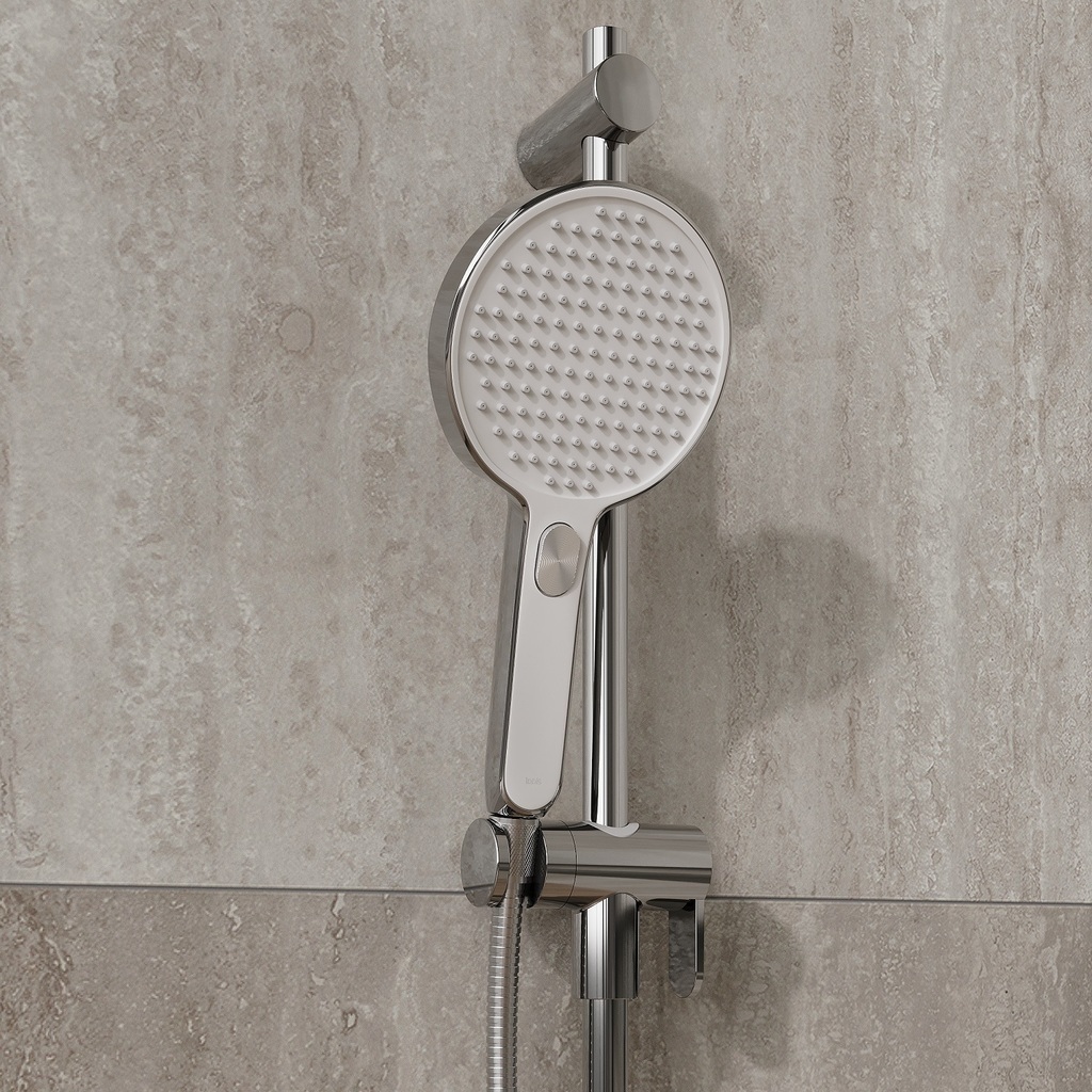Хромированная душевая лейка Esper с белой лицевой частью – универсальный аксессуар для смесителей и душевых систем в популярной круглой форме. Оптимальный диаметр 130 мм и эргономичный дизайн делают ее удобной для использования всеми членами семьи, а 3 режима (Spray, Inner Spray и Outer Spray) позволят подобрать подходящий под любое настроение.Переключение режимов осуществляется красивой удобной кнопкой. Кнопка не утоплена, а чуть выступает над поверхностью лейки – чтобы было комфортно, в том числе, девушкам с длинными ногтями.