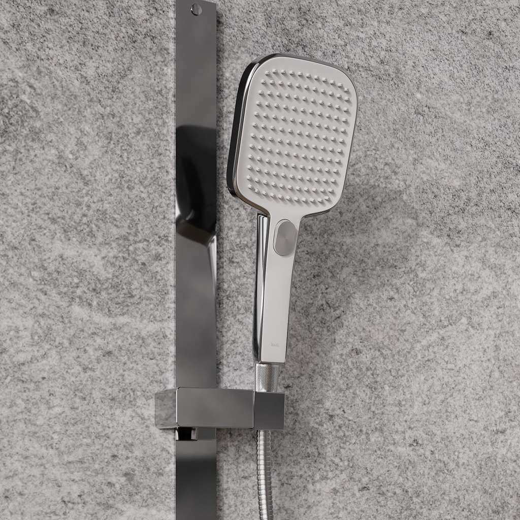 Хромированная душевая лейка Esper с белой лицевой частью – универсальный аксессуар для смесителей и душевых систем в актуальных скругленных формах. Оптимальный размер 110 мм и эргономичный дизайн делают ее удобной для использования всеми членами семьи, а 3 режима (Spray, Inner Spray и Outer Spray) позволят подобрать подходящий под любое настроение.Переключение режимов осуществляется красивой удобной кнопкой. Она не утоплена, а чуть выступает над поверхностью лейки – чтобы было комфортно, в том числе, девушкам с длинными ногтями.