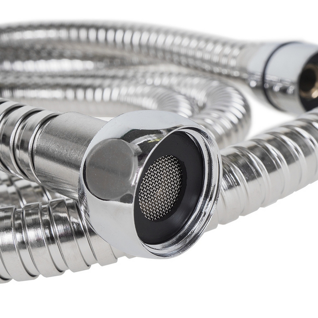 Шланг для душа с укороченной длиной 120 см будет удобен в ванных комнатах с небольшой душевой зоной или ванной.Благодаря универсальному соединению подходит для комплектации практически любых хромированных гигиенических леек.