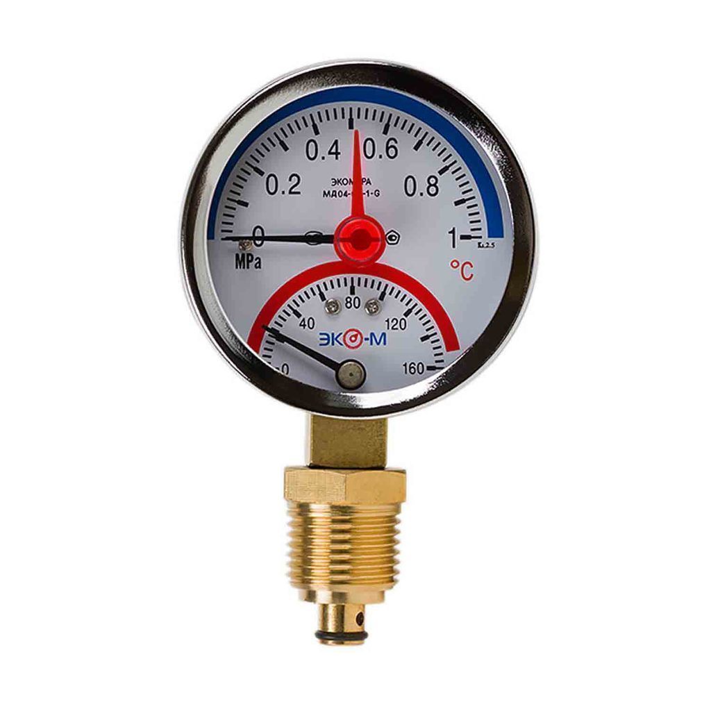 Термоманометр 63х1/4'' с переходником 1/2'' 160С 10 Бар МД04 (нижнее радиальное подкл.) ЭКОМЕРА