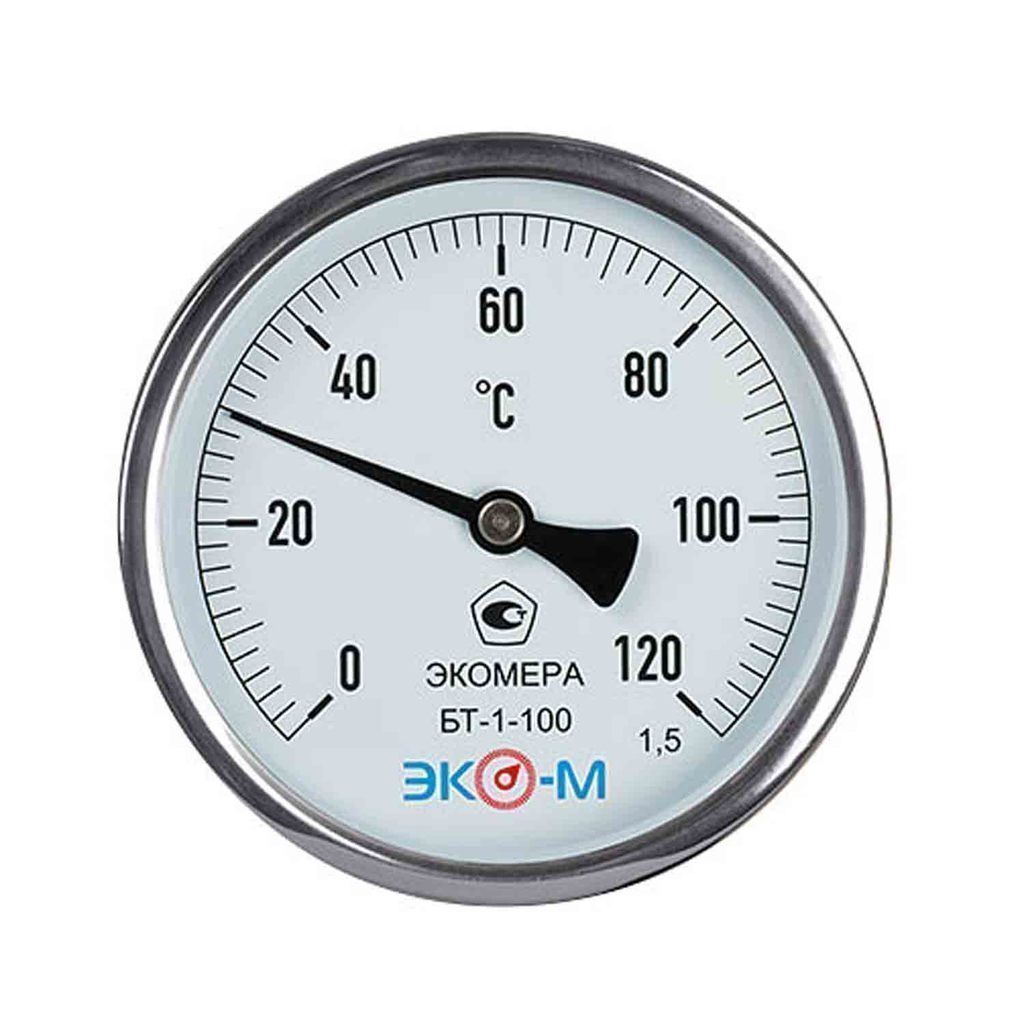 Термометр 100х1/2'' 120С БТ-1-100 шток 40мм (осевое подкл.,корпус алюминий) ЭКОМЕРА