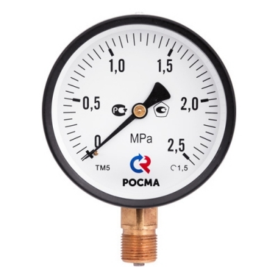 Манометр 63хМ12х1,5 10 бар ТМ-310Р (нижнее радиальное подкл., корпус сталь, минстекло) РОСМА