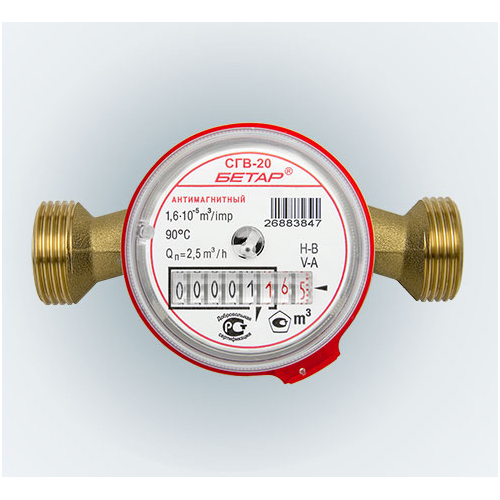 Счетчик для воды СГВ-20 антимагнитный (монт.длина 130 мм) (г.Чистополь)