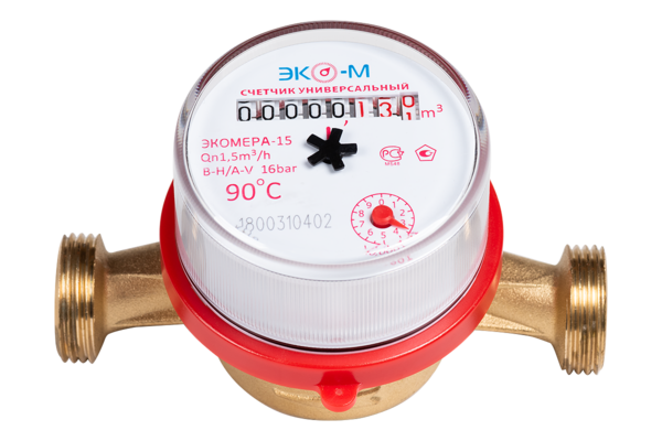 Счетчик для воды СГВ-15 антимагнитный с обратным клапаном (монт.длина 110 мм, с монт.ком) ЭКОМЕРА