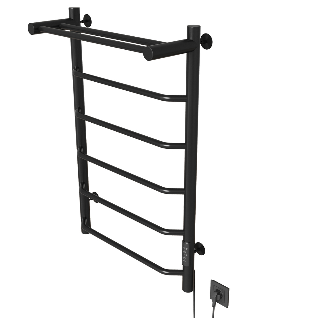 Полотенцесушитель MIXLINE MIRA 80х50 (таймер, 336 Вт, 5 перекладин + ПОЛКА) электрический ЧЕРНЫЙ
