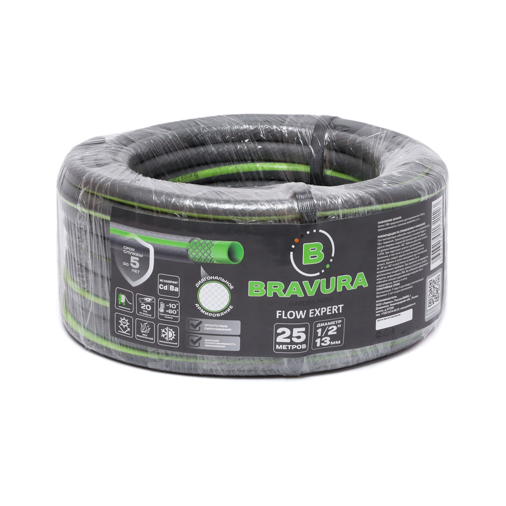 Шланг полив. арм. непрозр. 3-слойный 13мм бухта 25м (вес 2,5 кг) ПВХ "Bravura Flow Expert Grey" 1/2"