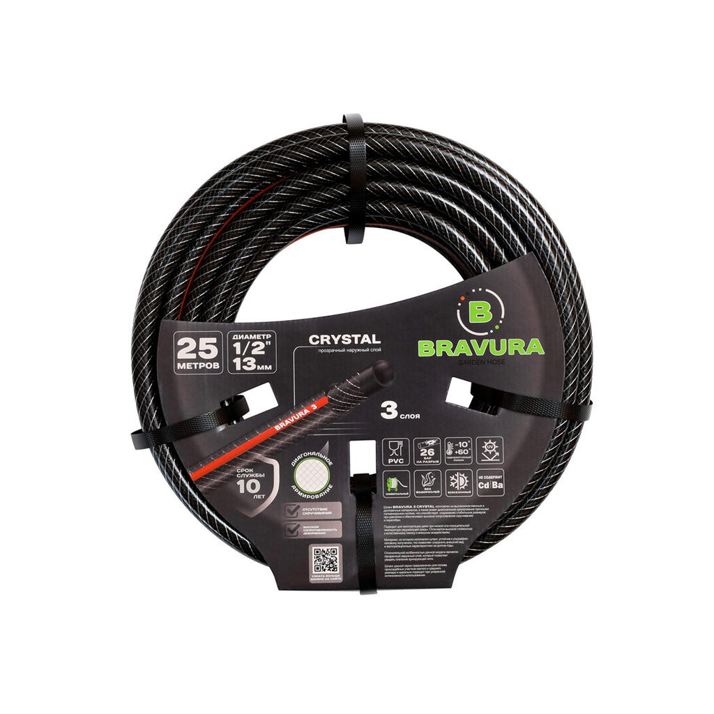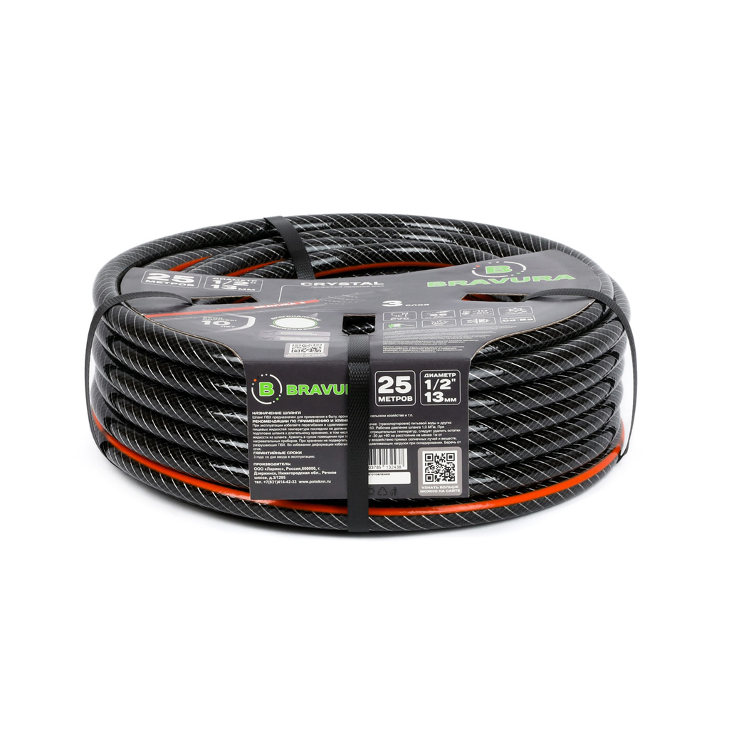 Шланг полив. арм. непрозр. 3-слойный 13мм бухта 25м (вес 3 кг) ПВХ "Bravura 3 crystal" 1/2"