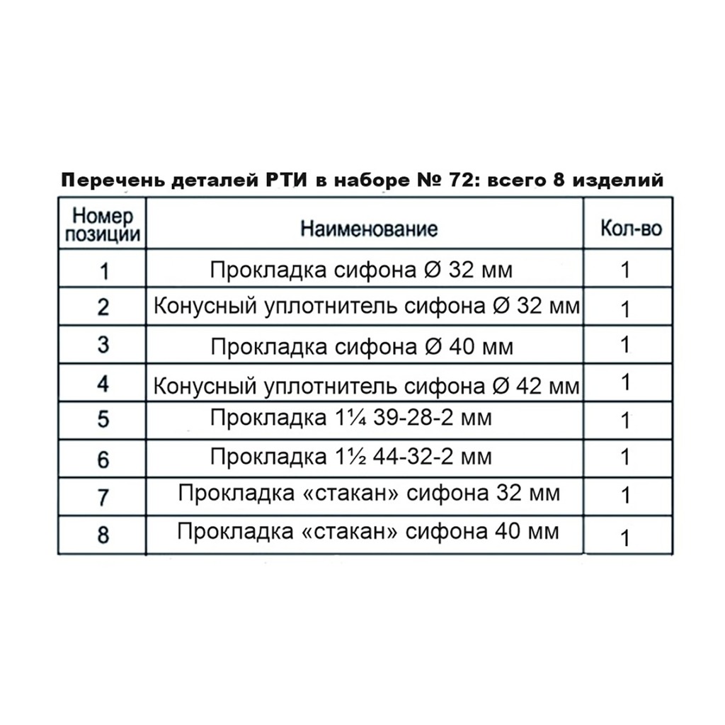 Набор предназначен для ремонта сифона D32 мм и D40 мм.Сертификаты, декларации и паспорта товаров TIM