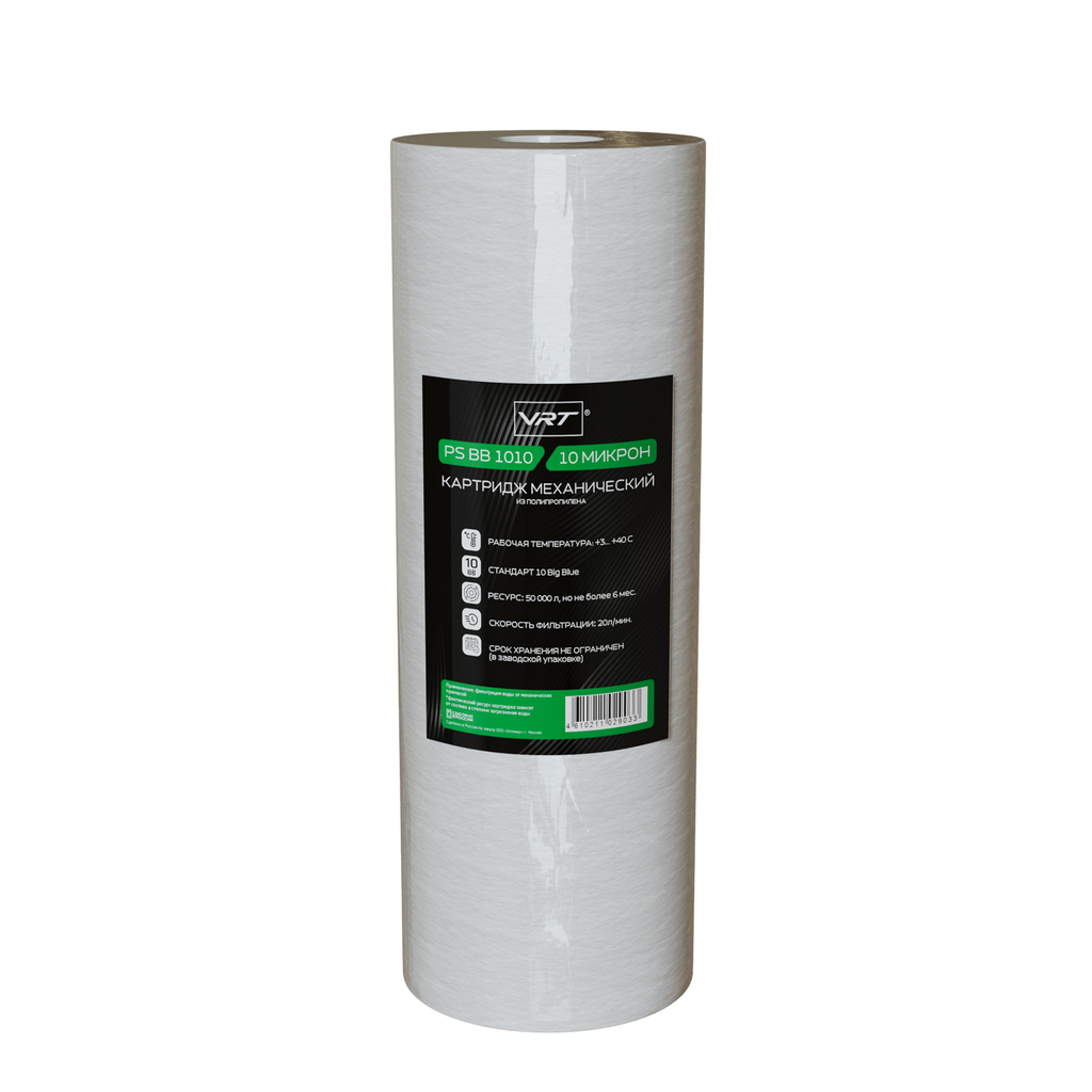 Механический картридж на холодную воду из вспененного полипропилена VRT. Подходят для тех, кто ценит безопасность и практичность. Картридж эффективно задерживает частицы ржавчины, песка, ила и других механических примесей размером до 10 микрон, предотвращая их попадание в воду. Благодаря устойчивости полипропилена к коррозии, перепадам температур и химическим воздействиям, картриджи долговечны и экологичны, а срок службы одного картриджа достигает 6 месяцев* — это снижает расходы на замену и сокращает количество отходов.Выбирая VRT, вы делаете вклад в экологию, сокращая потребление бутилированной воды, и экономите семейный бюджет.