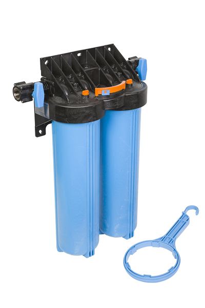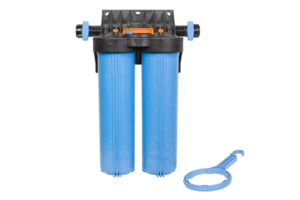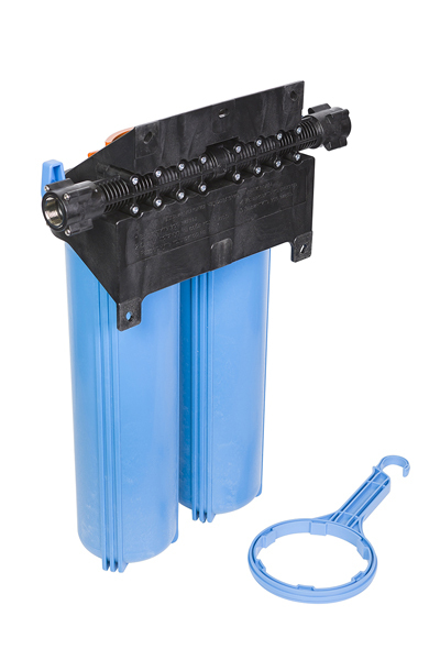 Корпус для картриджного фильтра предназначен для размещения в нём картриджей или фильтрующей засыпки для дальнейшей очистки холодной воды в бытовых условиях. Изготавливается из армлена, прочного материала устойчивого к циклическим нагрузкам и не пропускающего ультрафиолетовые лучи сквозь корпус. Типоразмер колб - Big Blue 20”.Использование двухступенчатых корпусов фильтра рекомендуется в случаях, где необходимы картриджи разных фильтрующих свойств. Это существенно облегчит монтаж и последующее обслуживание системы по сравнению с одинарными корпусами.