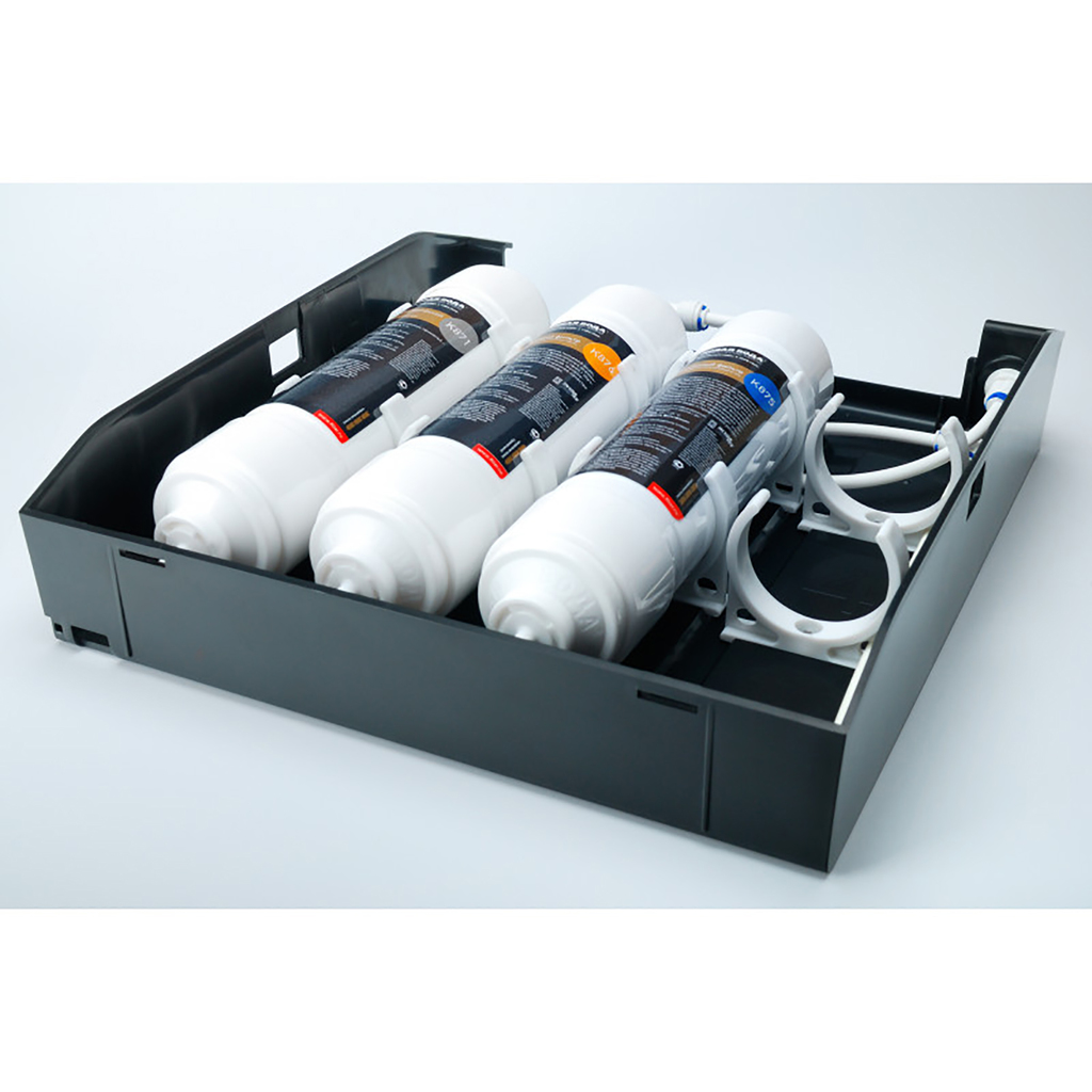 В комплект уже входят картриджи, отдельный кран для очищенной воды и всё необходимое для быстрой установки фильтра на месте эксплуатации.