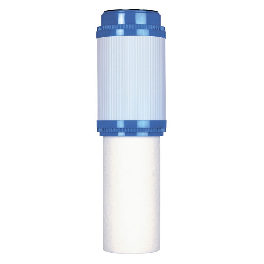Двухступенчатый картридж очистки воды от механических примесей, а также от органических и неорганических растворенных примесей.Очищает воду от механических примесей — песка, ила, ржавчины и т.п., а также от широкого спектра органических и неорганических растворенных примесей (свободного хлора, хлорорганических соединений, пестицидов, нефтепродуктов, тяжелых металлов, иных органических и неорганических соединений), устраняет неприятный запах воды, улучшает ее вкус.