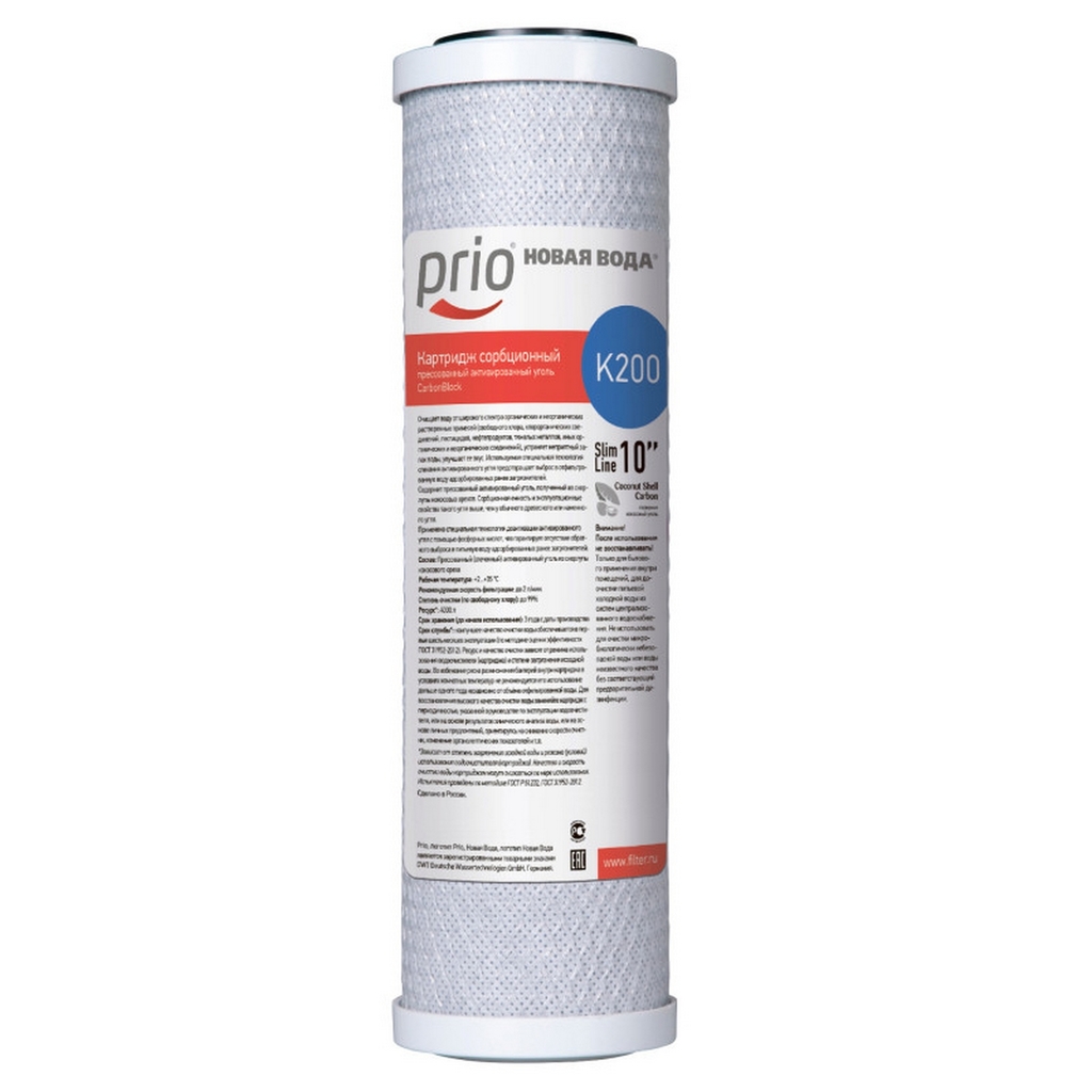 Картридж прессованного угля на хол. воду 10'' PRIO (НОВАЯ ВОДА) (K200)