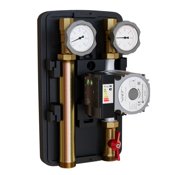 Насосная группа с прямым контуром для систем отопления мощностью (до 50кВт) представляет собой готовый комплект арматуры, необходим для выполнения функции циркуляции теплоносителя в контуре отопления, без возможности регулировки температуры теплоносителя.Группы быстрого монтажа VRT с прямым контуром применяется для подачи неохлажденного теплоносителя (с температурой источника) в контур радиаторного отопления, контур водонагревателя и пр.