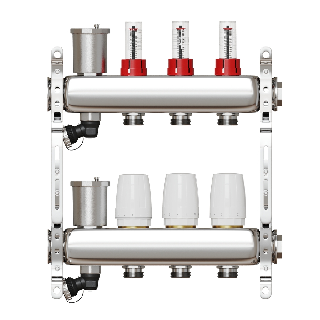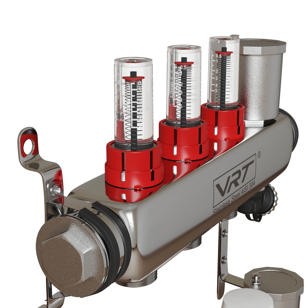 Коллекторная группа VRT® 1'' х 3/4'' (евроконус) 3 вых, авт в/отвод, c расходомерами