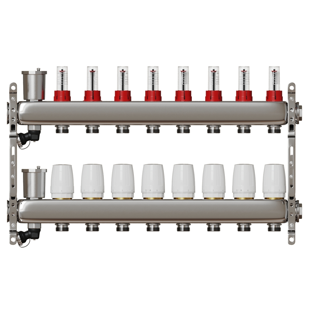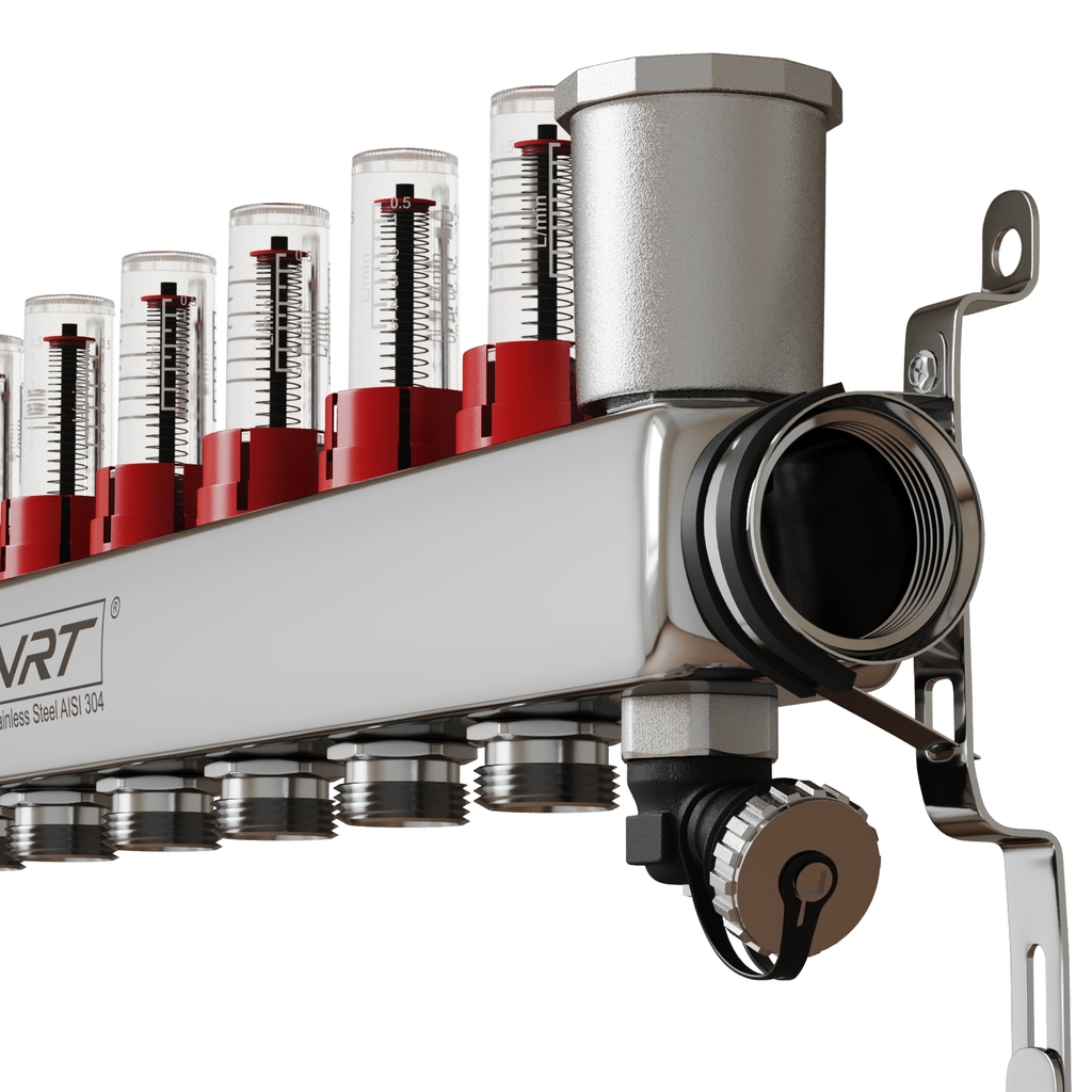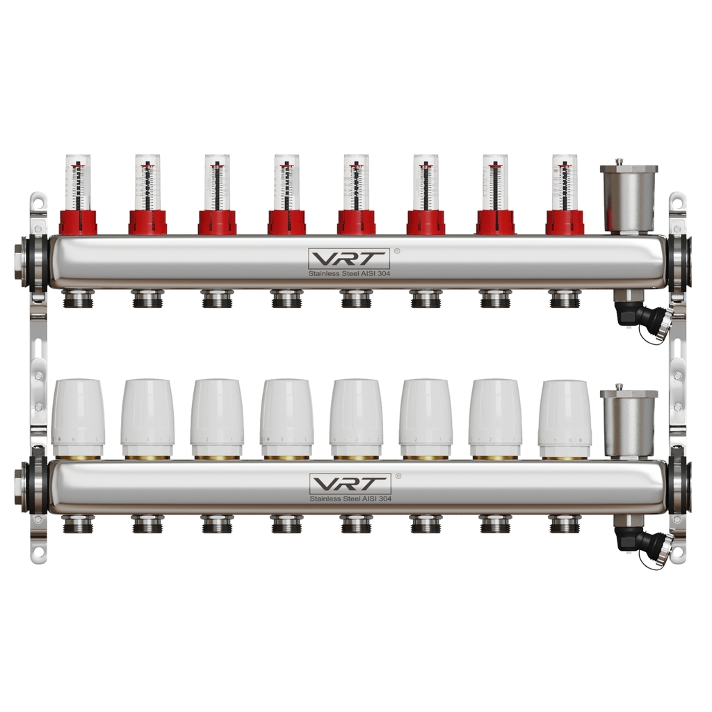 Коллекторная группа VRT® 1'' х 3/4'' (евроконус) 8 вых, авт в/отвод, c расходомерами